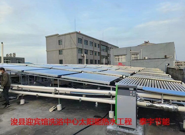 ??h迎賓館洗浴中心共有淋浴頭20個左右,20恒溫大池一個。洗浴中心生活熱水由真管管太陽能和空氣能熱泵相結(jié)合共同提供。